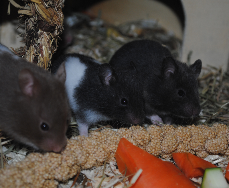 Hamsterbabies beim fressen - einfach am besten zu fotografieren ;-) Der Gemüsebrei wurde nun bei ihnen abgesetzt, ab sofort fressen sie ausschließlich frisches Gemüse. Und natürlich Kolbenhirse :-)
