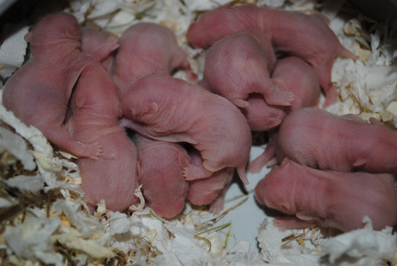 Der P-Wurf kam einen Tag früher als erwartet auf die Welt. Es liegen 8 Babies im Nest, aber so dick wie Enola war, müssen es mehr gewesen sein. Noch nie haben wir so kleine Babies gesehen. Wir hoffen, dass alle durch kommen.